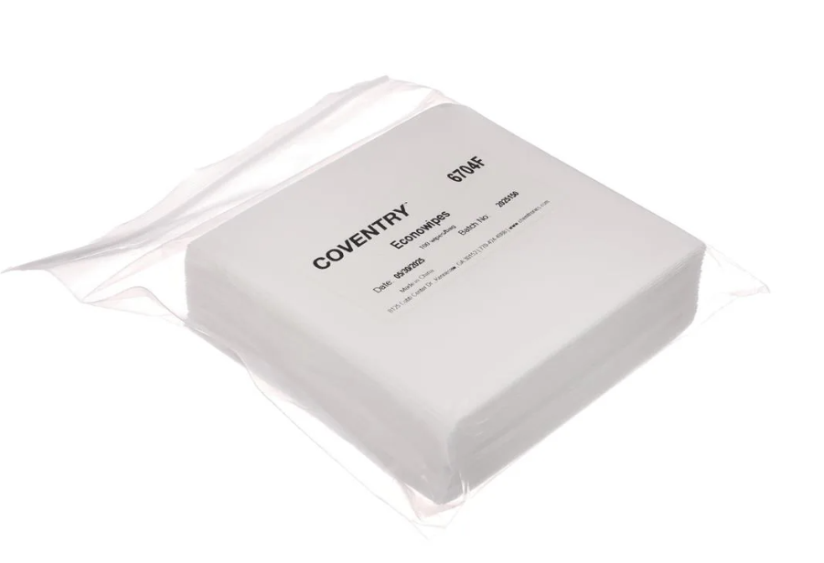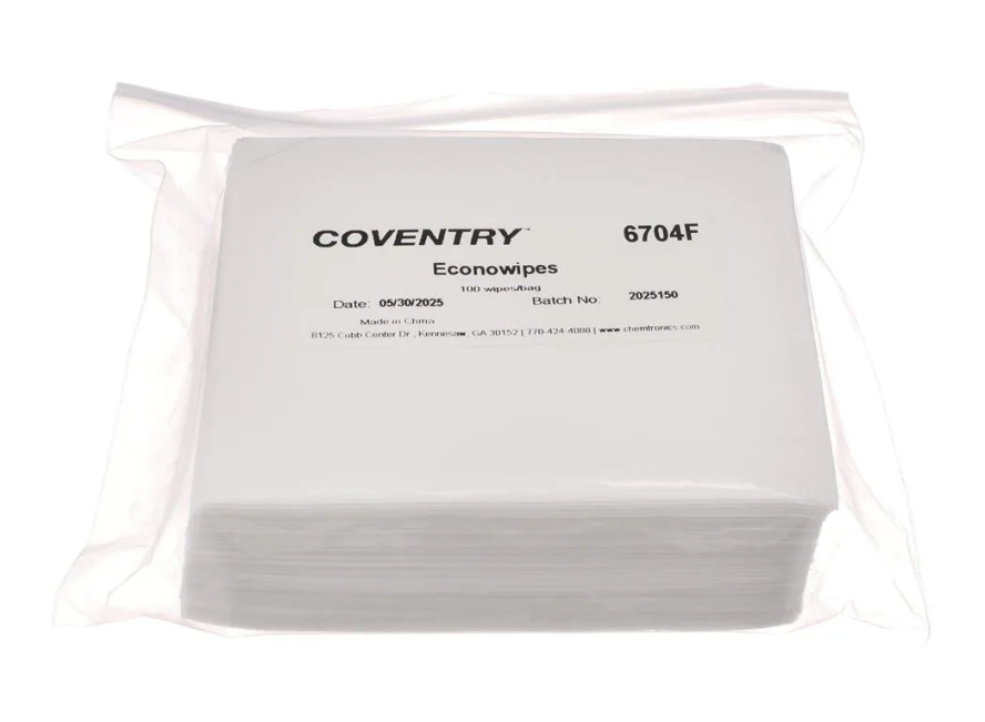 Econowipes consist of 55/45 cellulose/ polyester nonwoven fabric. These wipes have excellent absorbency, and contamination entrapment, as well as high strength. Econowipes are ideal as an economical utility wipe for any clean area.